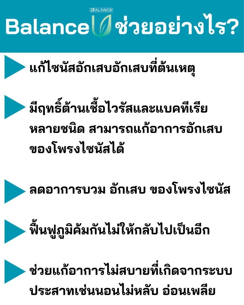 โดยเข้าไปต้านการอักเสบ ลดอาการบวม ที่โพรงไซนัส แก้อาการคัดจมูก น้ำมูกไหล ไอ จาม พร้อมทั้งช่วยเสริมระบบภูมิคุ้มกันให้กับร่างกาย ลดอาการภูมิแพ้ และป้องกันการเกิดภาวะแทรกซ้อนต่างๆ วิธีนี้จึงเป็นการแก้ปัญหาที่ต้นเหตุและป้องกันไปพร้อมกัน