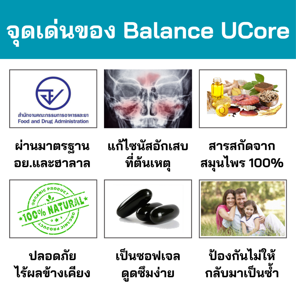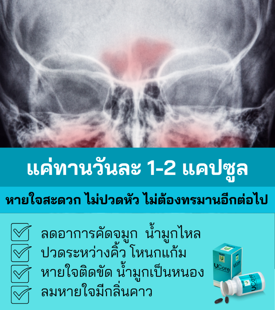 จนอ๋อยได้มาทาน UCore อาการหายใจไม่ออก น้ำมูกไหล ปวดระหว่างคิ้ว โหนกแก้มก็ดีขึ้น จนเดี๋ยวนี้อาการต่างๆยังไม่กลับมากำเริบอีก เลยแนะนำให้หน่อยลองทานดู